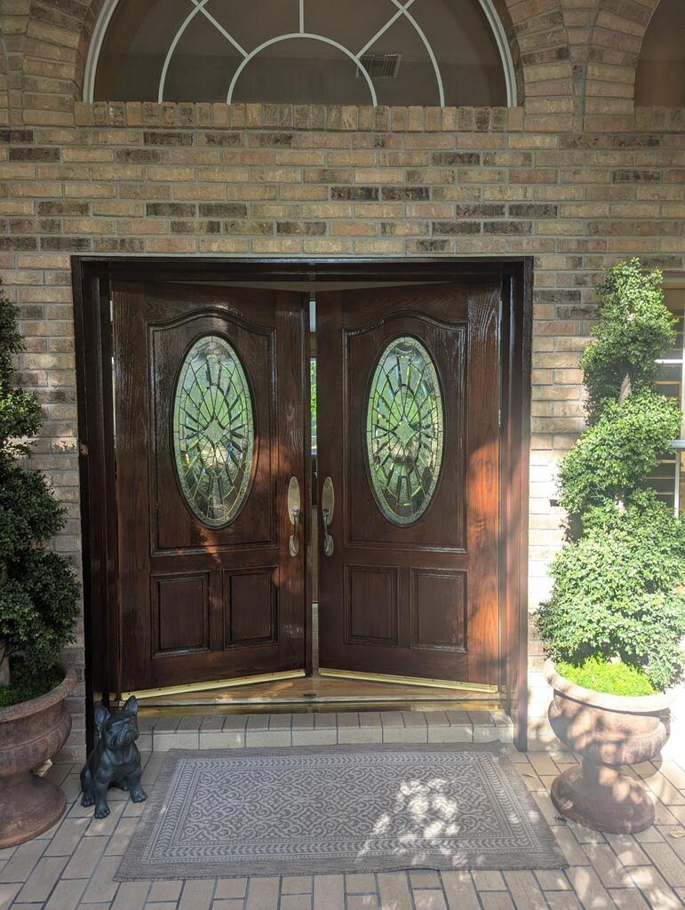 We specialize in refinishing your worn-out entry door systems. Making them like new again. We take 1 door down at a time. Cover the opening with plastic then begin the stripping process. We lay the door down on sawhorses then chemically strip, sand and clean the door to be ready for staining. We hang the door then repeat the process to the other door. We typically will have the doors stripped and 1 coat of Sikkens cetol applied the first day. This will require 2 more coats to achieve the ideal finish. We fish your doors up so they can always be secured at the end of each day. Now your doors are good as new again.