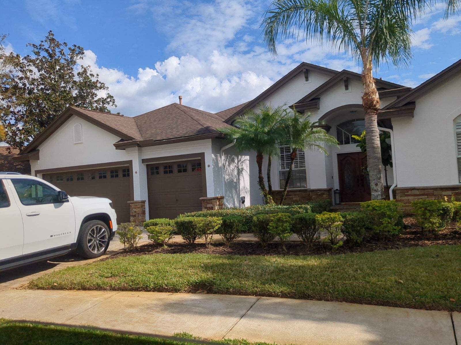 After we completed the interior of this beautiful Tarpon Springs Florida home they asked if we would complete the exterior painting. Of course, we started this project like all of our exteriors with a thorough pressure washing to make sure all surfaces are clean and ready for painting. Then we proceeded to cover all windows and landscaping with drop cloths and plastic. Next, we caulked all windows and filled all stucco cracks with brush grade elastomeric patch. Now the home is ready to begin painting. We start with a clear sealer/primer to get a good surface for painting. Then we apply 2 coats of Sherwin William's Latitude Exterior Paint satin finish paint. We do a complete clean up and walk the entire project with our customer to make sure that the exterior painting project is absolutely perfect
